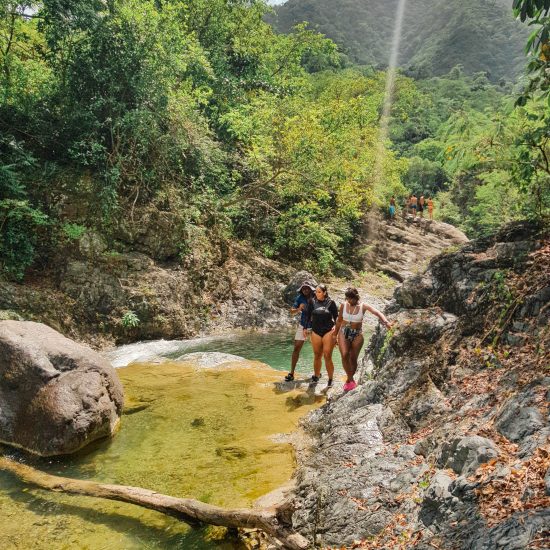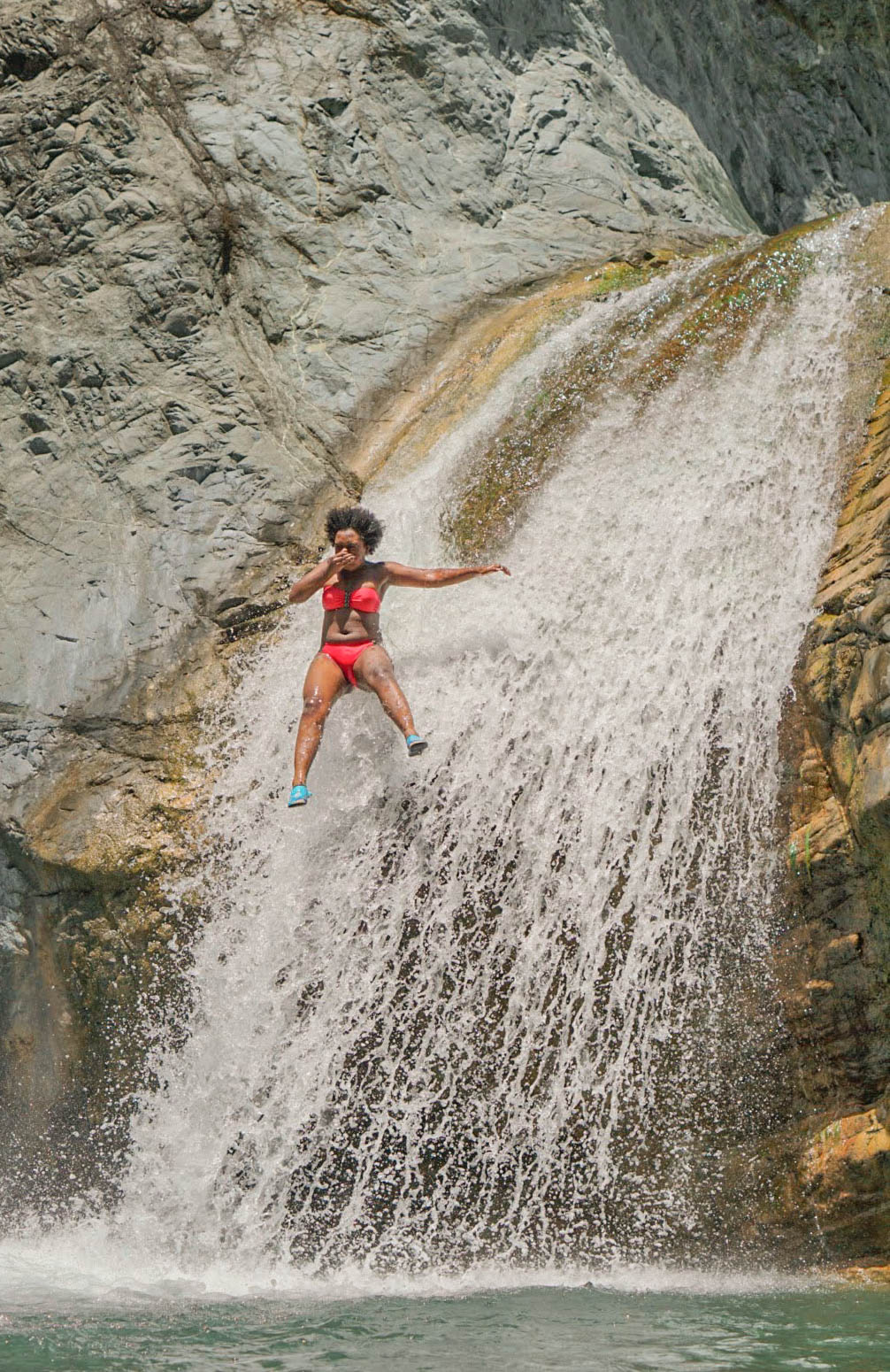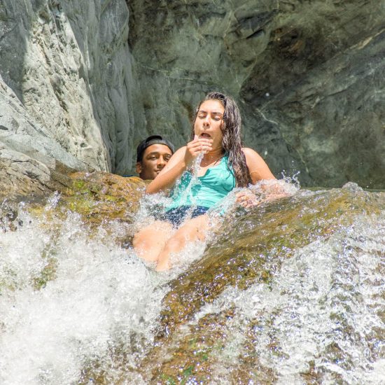 Luego nos vamos de aventura en un camión, hacia las Yayitas para quitarnos «la calor» en sus refrescantes aguas. Como siempre, los más aventureros pueden disfrutar de alguna experiencia, en esta ocasión pueden hacerlo en un tobogán natural de unos 8 metros de altura.